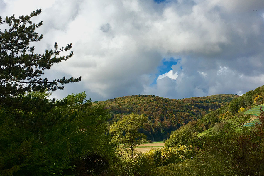 Süss-herb riecht es hier, knistrig. Wenn sich unsere Sinne weiter öffnen, vermeinen wir, weiter unten den Bach plätschern zu hören. Der rätschende Ruf eines Eichelhähers lässt uns den Blick gegen den Himmel heben. Eine Handvoll Rotmilane fangen unseren Blick mit ihrem eleganten Segelflug ein.