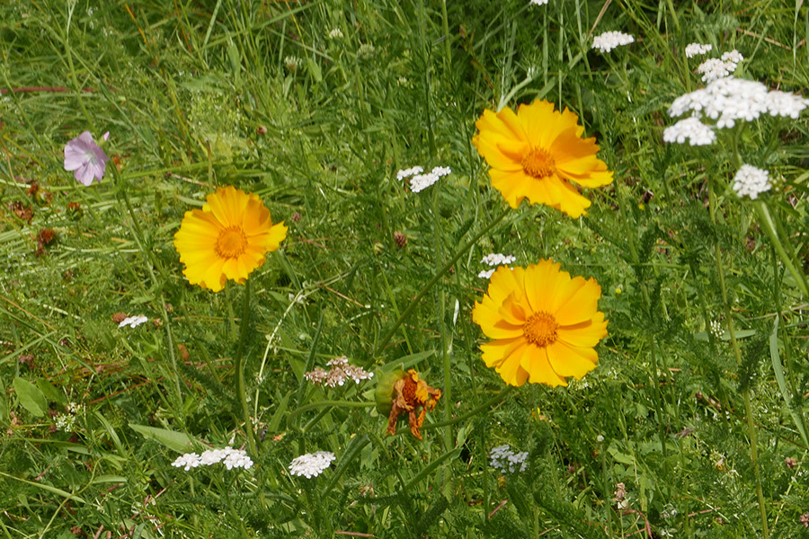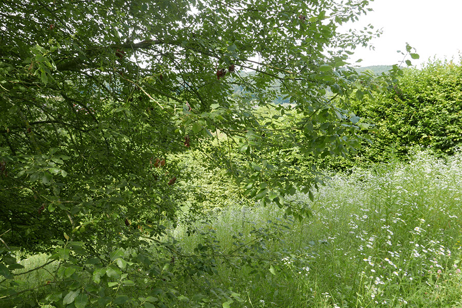 Dies alles ist an unserem Grundstück unbemerkt vorbeigezogen. Ganz in Ruhe haben sich auf ihm Wiesenblumen und Heilkräuter angesiedelt, Johanniskraut, Braunellen und Kartäusernelken strecken ihre Blüten der Sonne entgegen, es wachsen Sträucher dort und