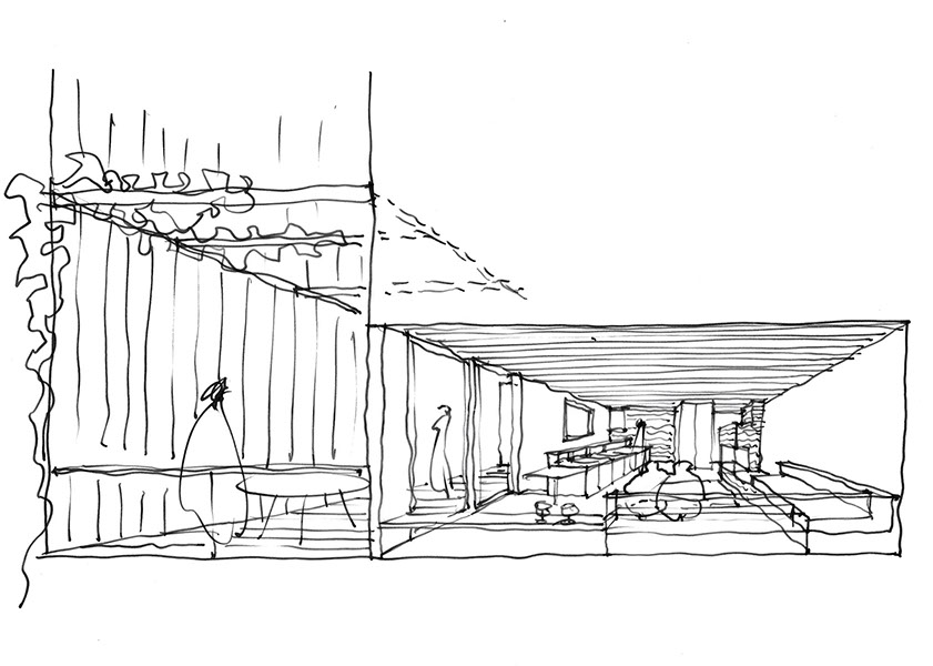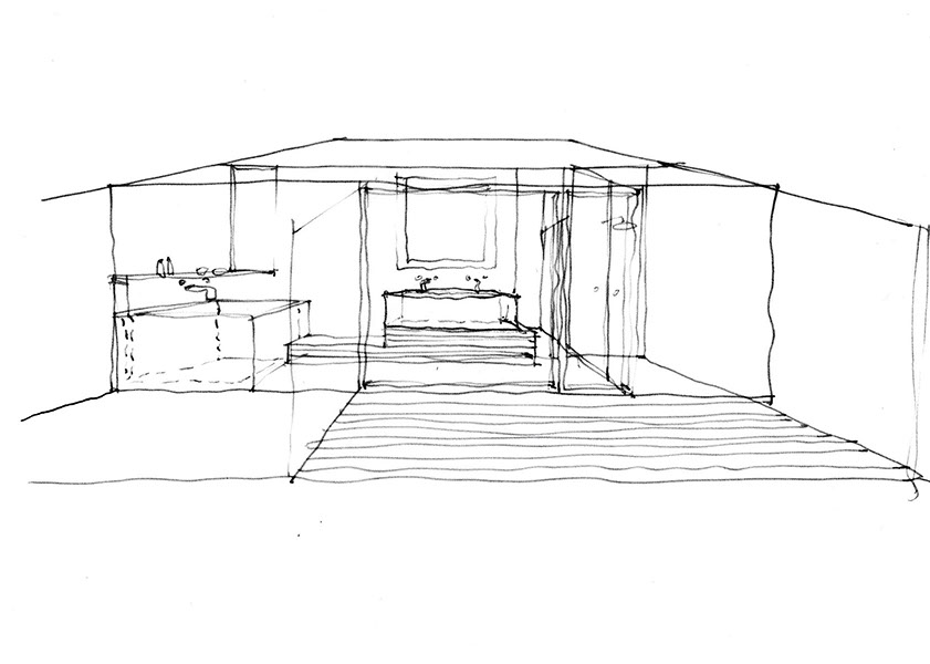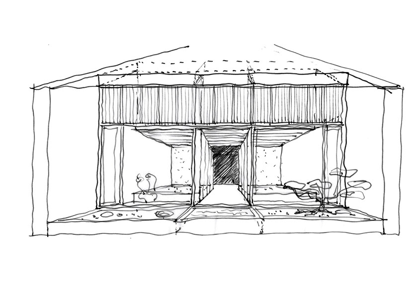 Für die Entwicklung der Architektursprache haben wir uns an Prinzipien der japanischen Ästhetik orientiert. In dieser spielen Leitgedanken wie Bescheidenheit, Gelassenheit, Heiterkeit, Ruhe und Harmonie, eine Rolle, wie auch Achtung vor der Eigenheit und dem würdevollen Altern der Dinge, Anmut, Dunkelheit, Tiefe, das Geheimnisvolle und Analogien zur Natur.