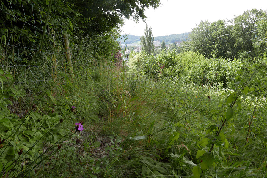 Am Schweizer Nordkap, am Rande eines alten Bauern- und Weindorfes, findet sich ein Grundstück, das versteckt hinter Bäumen und Hecken, an einem Südwesthang liegt, auf
